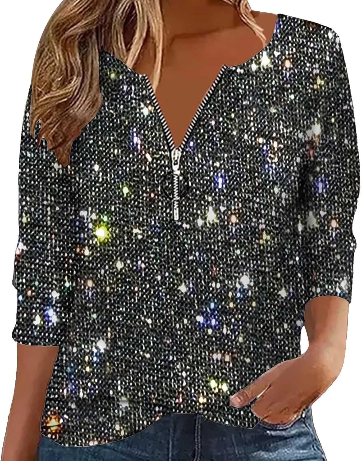 Blusa Paillettes Curvy Camicetta Casual Maniche Lunghe Maglia con Glitter da Sera Invernali Maglietta con Brillantini Scollo a V Blusa...