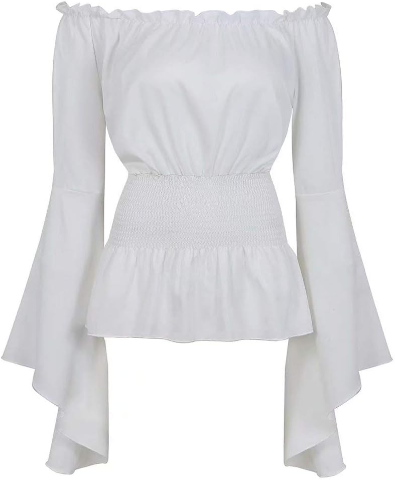Camicie Camicette da donna Camicie da pirata rinascimentali medievali estive Camicette da donna gotiche Camicie a maniche lunghe con spalle scoperte Costume Top