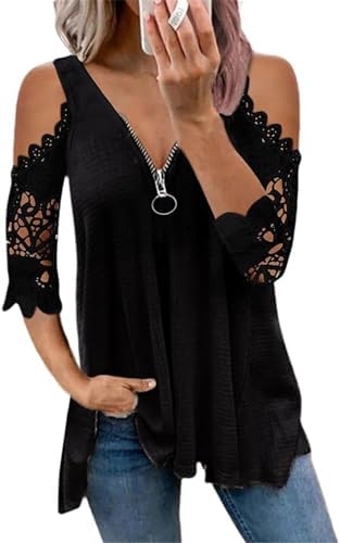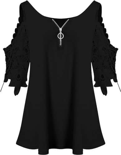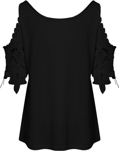 Camicia con Pizzo Donna Spalle Scoperte Estiva Manica Corta Scollo a V Elegante Camicetta Maglietta Taglie Forti Floreale Loose Casual...