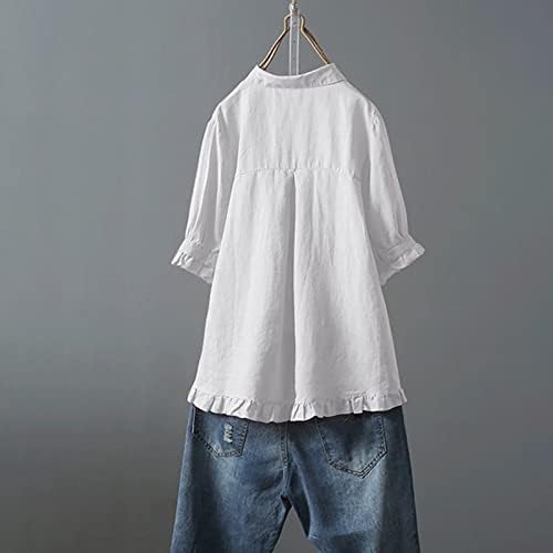 Camicia Donna Bianca Scollo a V Elegante Top Fantasia Estiva Casual Camicetta Cotone Cerimonia Blusa Magliette Lunga Manica Corta Camicia...