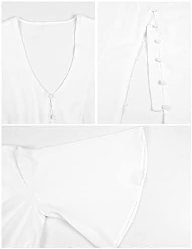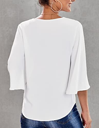 Camicia Donna Camicetta Elegante Maglietta Manica a 3/4 Manica a Tromba Scollo a V Sexy Blusa Casual Tinta Unita Top