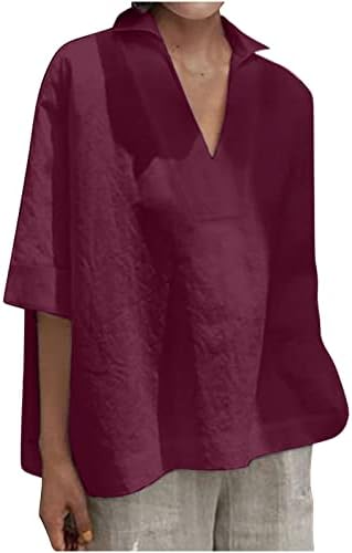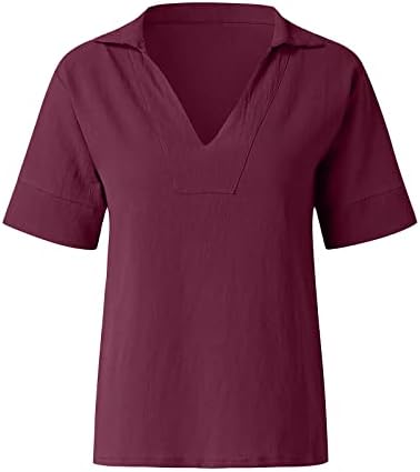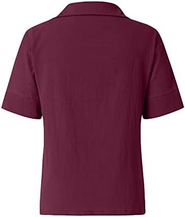 Camicia Donna Elegante Lino Casual Top Scollo V Manica Corta Leggero Camicette con Tasche Estiva Cotone Blusa Curvy Taglie Forti...