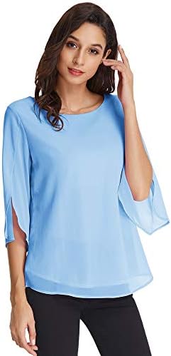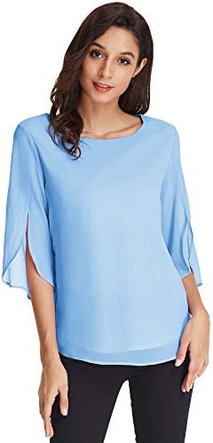 GRACE KARIN Camicia Donna a Manica a 3/4 Top Casual Tessuto in Chiffon Girocollo Manicotto Split