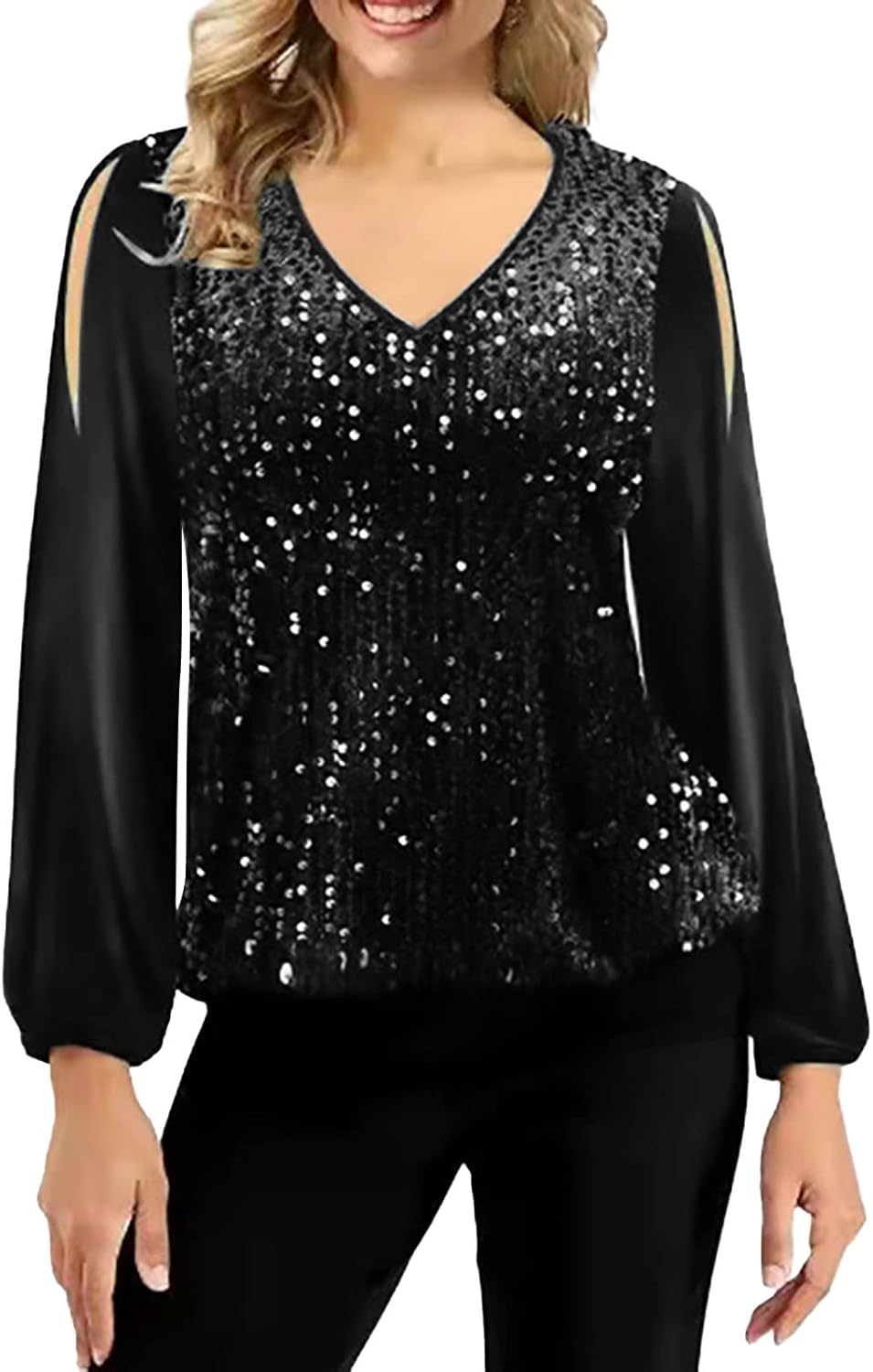 Kobilee Top Donna Elegante Brillantini Cerimonia Taglie Forti Camicia Maglia Paillettes Curvy Cotone Invernali Blusa Rossa Top Paillettes Manica Lunga...