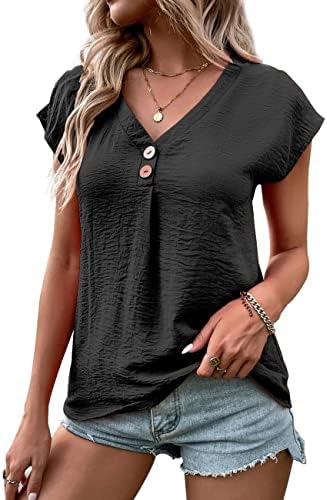 KONFEN Magliette Donna Camicia Estiva, Scollo a V Manica Corta Camicette con Bottoni, Elegante Blusa T-Shirt Casual Shirt Tinta Unita,...
