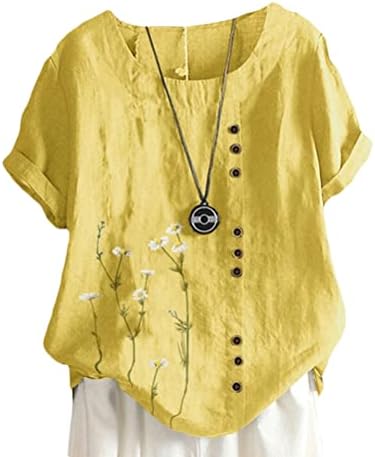 ORANDESIGNE Camicia in Cotone e Lino Donna Maniche Corte Girocollo Taglie Forti Maglietta Ampia Elegante Estiva Stampa Floreale Moda Casual...