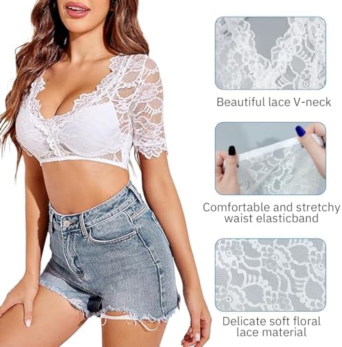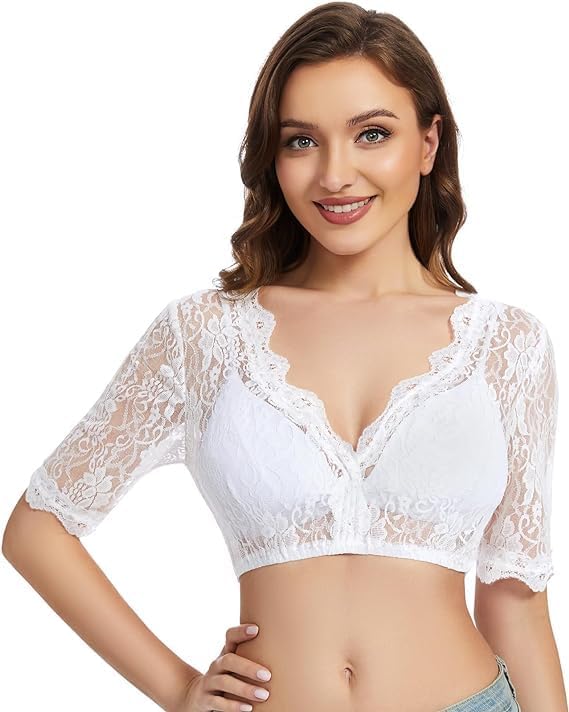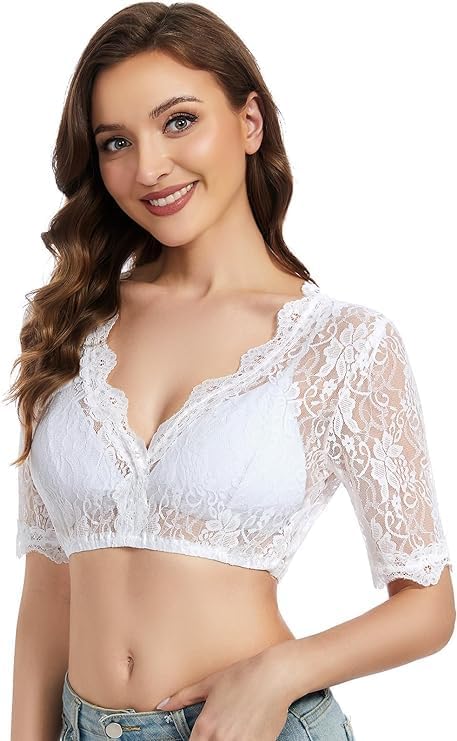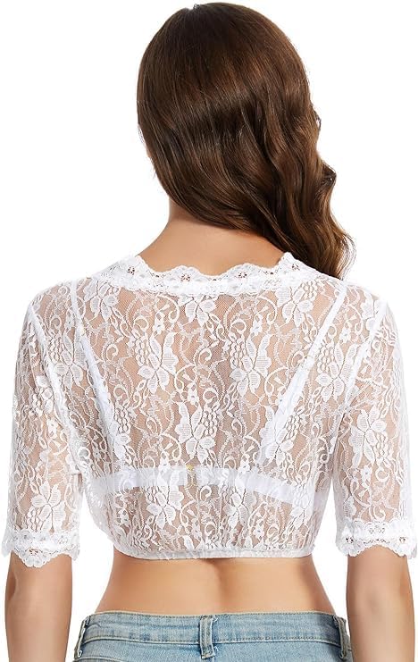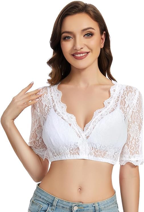 Satohom Maglietta Trasparente Donna Camicia Pizzo Camicetta Dirndl Bianca Tops Blusa Elegante Sexy Clubwear Bavarese Tradizionale Oktoberfest