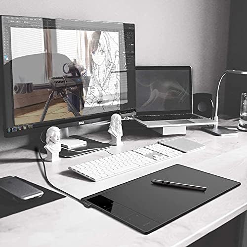 【Design Ultrasottile e Spazio Creativo Più Ampio】La tavoletta grafica ha una vasta area di disegno 10×6 che sembra il disegno su carta. Supporta sia i mancini che i destri ed è spessa solo 9 mm. Inoltre, viene fornita con guanti a due dita, OTG (per collegarsi a un telefono cellulare), ecc., quindi non è necessario acquistare accessori aggiuntivi.