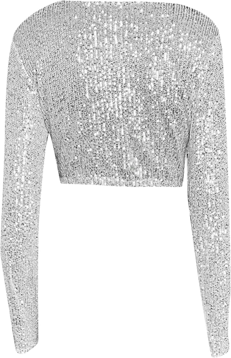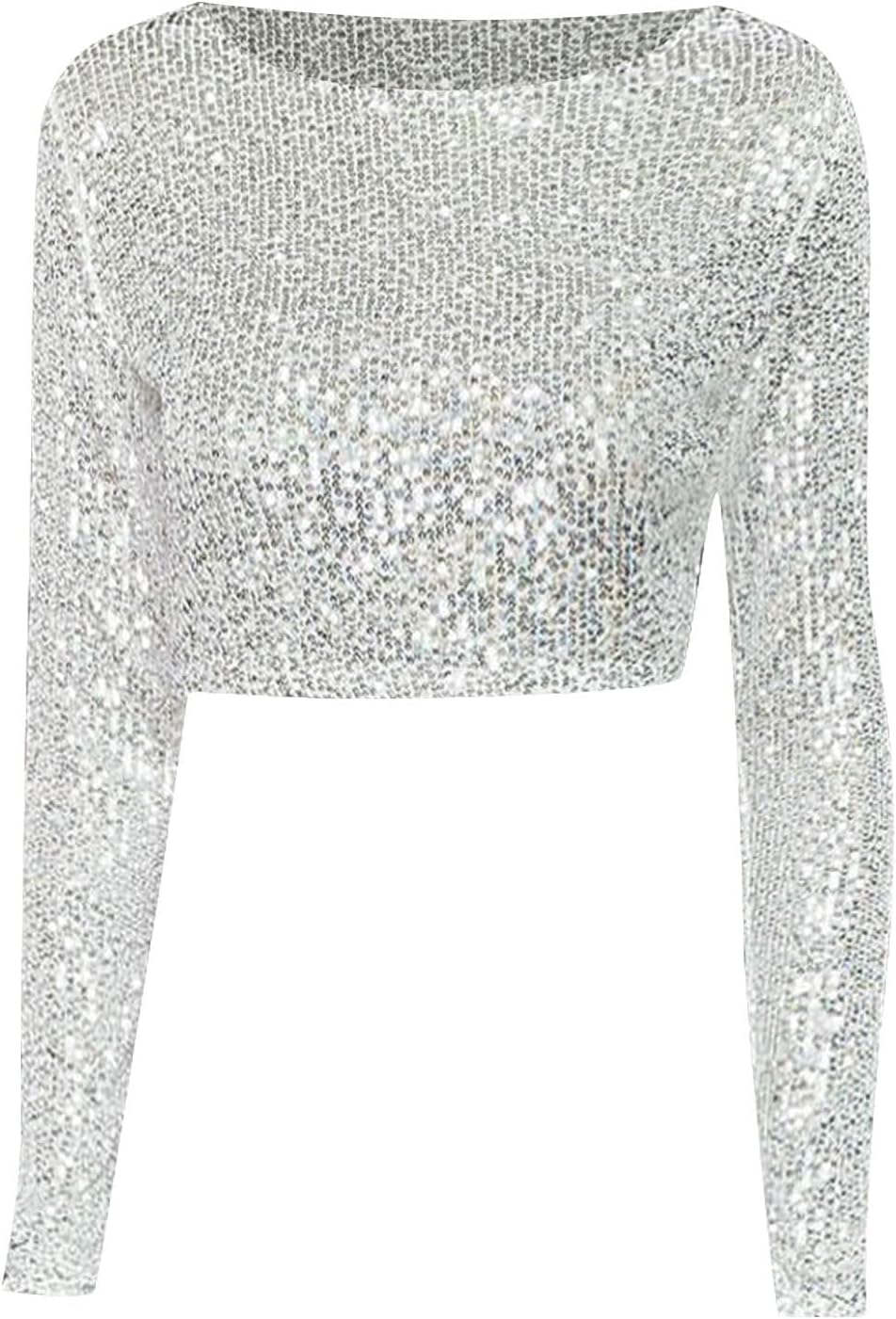 Top Paillettes Donna Manica Lunga Brillantini Maglia con Paillettes Corto Curvy Maglietta Tops Casual Glitter Sexy Blusa Donna Elegante Girocollo...