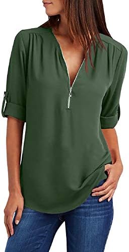 La manica arrotolabile a 3/4 alla moda con bottone è regolabile in base alle esigenze. Quando ti abbassi proteggi anche dall’aria condizionata e dai venti freddi, tieni le donne e le mamme al caldo in ufficio o fuori.Questa camicetta con scollo a V sfoggia un look più snello ed elegante alla moda che si abbina perfettamente ad abiti da lavoro come una gonna aderente ai fianchi, pantaloni a gamba larga, pantaloni da completo e tacchi alti. Puoi anche abbinarlo a gonne casual, pantaloni, jeans, leggings e molto altro quando vuoi rilassarti con gli amici. Ciò fornisce più opzioni per il comfort e lo stile quando si abbina questa maglietta con abiti diversi.