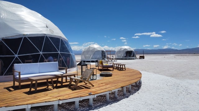Nel nord-ovest dell’Argentina, i campi tendati delle Salinas Grandes evocano la forma dei granuli di sale, creando un legame visivo e tattile con il paesaggio salino. Qui, gli ospiti possono vivere un’esperienza unica, circondati dall’immensità delle saline, in alloggi che sembrano emergere direttamente dalla terra.