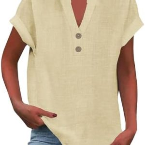 Onsoyours Donna Camicetta in Lino Cotone Estive Camicie Maniche Corte con Bottoni Tunica Solidi Blouse Canotta Elegante Blusa Top Camicie
