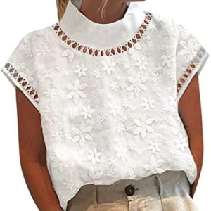Onsoyours Donna Camicetta in Lino Cotone Estive Camicie Maniche Corte con Bottoni Tunica Solidi con Risvolto Blouse Canotta Elegante Blusa Top Camicie
