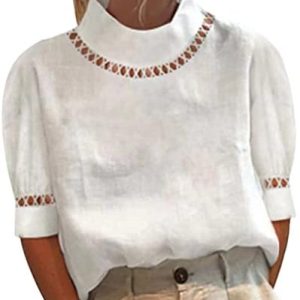 Onsoyours Donna Camicetta in Lino Cotone Estive Camicie Manica 3/4 con Bottoni Tunica Solidi con Risvolto Blouse Canotta Elegante Blusa Top Camicie
