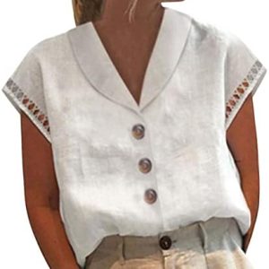 Donna Camicetta in Lino Cotone Estive Camicie Maniche Corte con Bottoni Tunica Solidi Blouse Canotta Elegante Blusa Top Camicie Offerte di Primavera Comoda e Traspirante Classico Maglietta