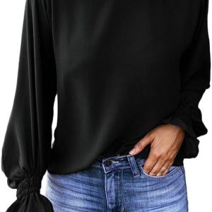 MeeQee Blusa Manica Lunga per Donna Scollo a Girocollo Moda Comodo Chiffon Camicia Top Elegante Maniche Lunghe Maglietta Camicette con Maniche a Tromba Casual Allentate T-Shirt Autunno-Inverno