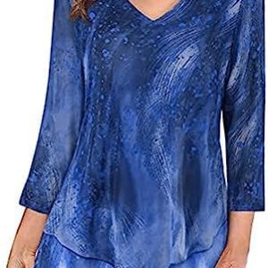 MJGkhiy Camicia Donna Elegante Cerimonia in Chiffon Blusa Estiva Traspirante 3/4 Manica Maglietta Top Leggero Scollo a V Camicetta Moda Orlo Irregolare Camicie con Stampa Floreale