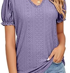 Tuopuda Maglietta Manica Corta Donna, T-Shirt Scollo a V Estiva Elegante Camicia Casual Tinta Unita Camicetta Sportivi Cotone Stretch Moda Top Taglie Forti Manica Blusa