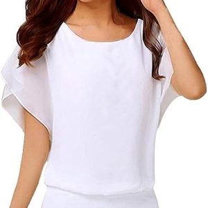 Maglietta estiva da donna, a maniche corte, casual, grande, rotonda, in chiffon, elegante, a maniche corte, in cotone, taglie grandi e sexy