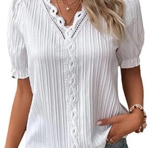ORANDESIGNE Donna Blusa Pizzo Camicia Elegante Camicetta Magliette Scollo a V Manica Corta a Sbuffo Casuale Leggera Camicie Maglietta Moda T-Shirt Allentato Tops Estate