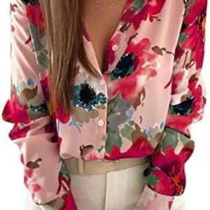 Onsoyours Camicette da Donna Eleganti con Scollo a V Profondo a Maniche Lunghe Camicia Blusa Fiore Stampato Sexy Casual Camicetta Shirts Tops