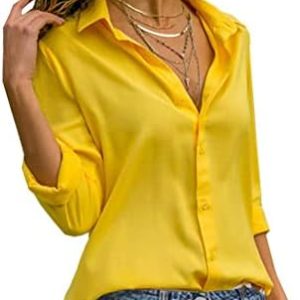 Onsoyours Camicia Donna Maniche Lunghe Blusa Elegante Patchwork Camicia Scollo a V Sexy Camicetta da Ufficio Casual con Bottoni Festa Cerimonia