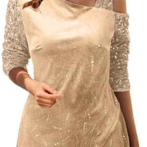 Top Paillettes Donna Manica Lunga Brillantini Maglia con Paillettes Corto Curvy Maglietta Tops Casual Glitter Sexy Blusa Donna Elegante Girocollo Cerimonia Mini Camicetta per Feste e Serate