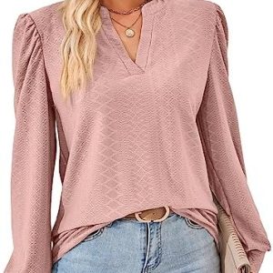 Camicia da Donna Elegante con Scollo a V Top a Maniche Lunghe da Lavoro/Casual, T-Shirt in Stile Bohemian, Chic Blusa Moda Magliette Tinta Unita Pullover (S-XXL)
