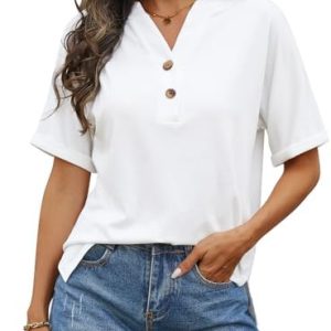 Niwicee Camicia Donna Estiva Maglietta Scollo a V Casual Top T Shirt con Bottoni Moda Casual Camicetta Tinta Unita Classico Maglia Tees Camicia Donna Manica Corta Casual
